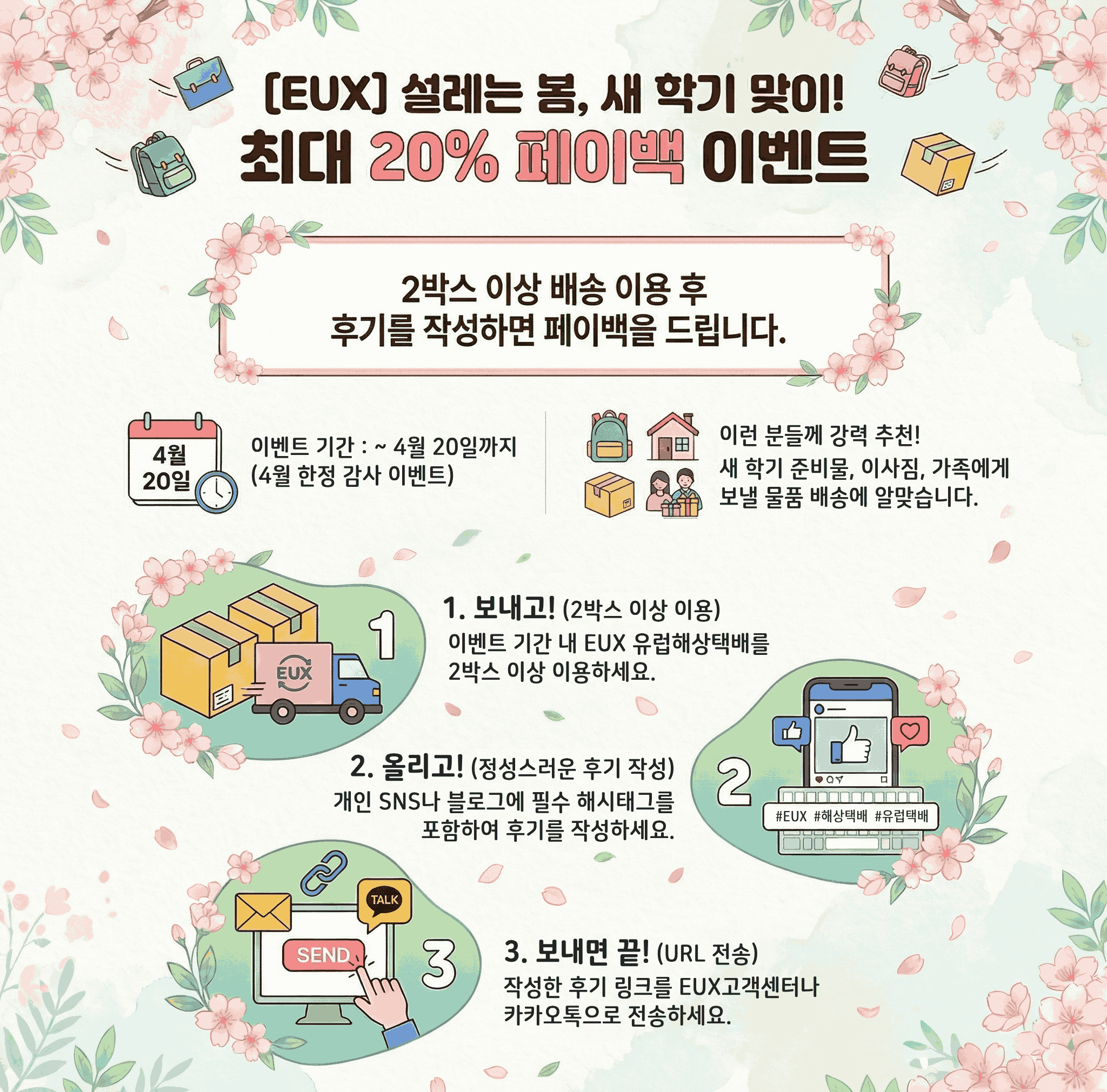 EUX가 새 봄, 새 학기를 맞아 '4월 한정 이벤트'를 시작합니다.