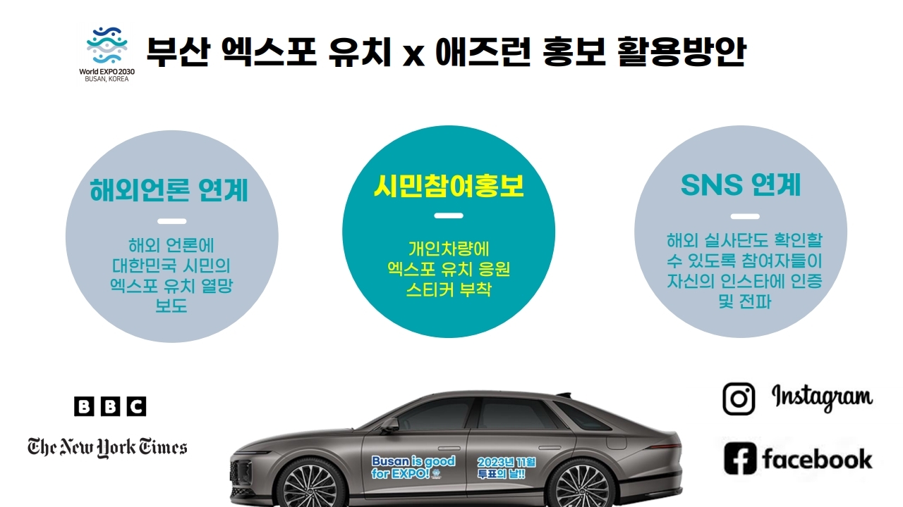 그래서 '일반 시민들이 자신의 차량에 부산세계박람회 유치 응원 슬로건을 부착하고 다니는 캠페인을 기획'하게 되었습니다.