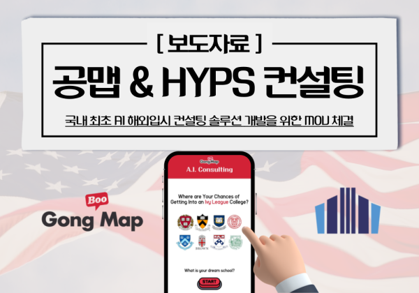 공맵과 HYPS컨설팅의 MOU 체결은 해외교육과정 업계에서는 국내 최초로 AI기술력과 해외입시교육 전문성이 결합된 제휴로, 해외입시를 준비하는 학생들에게 크게 기여할 것으로 기대된다.