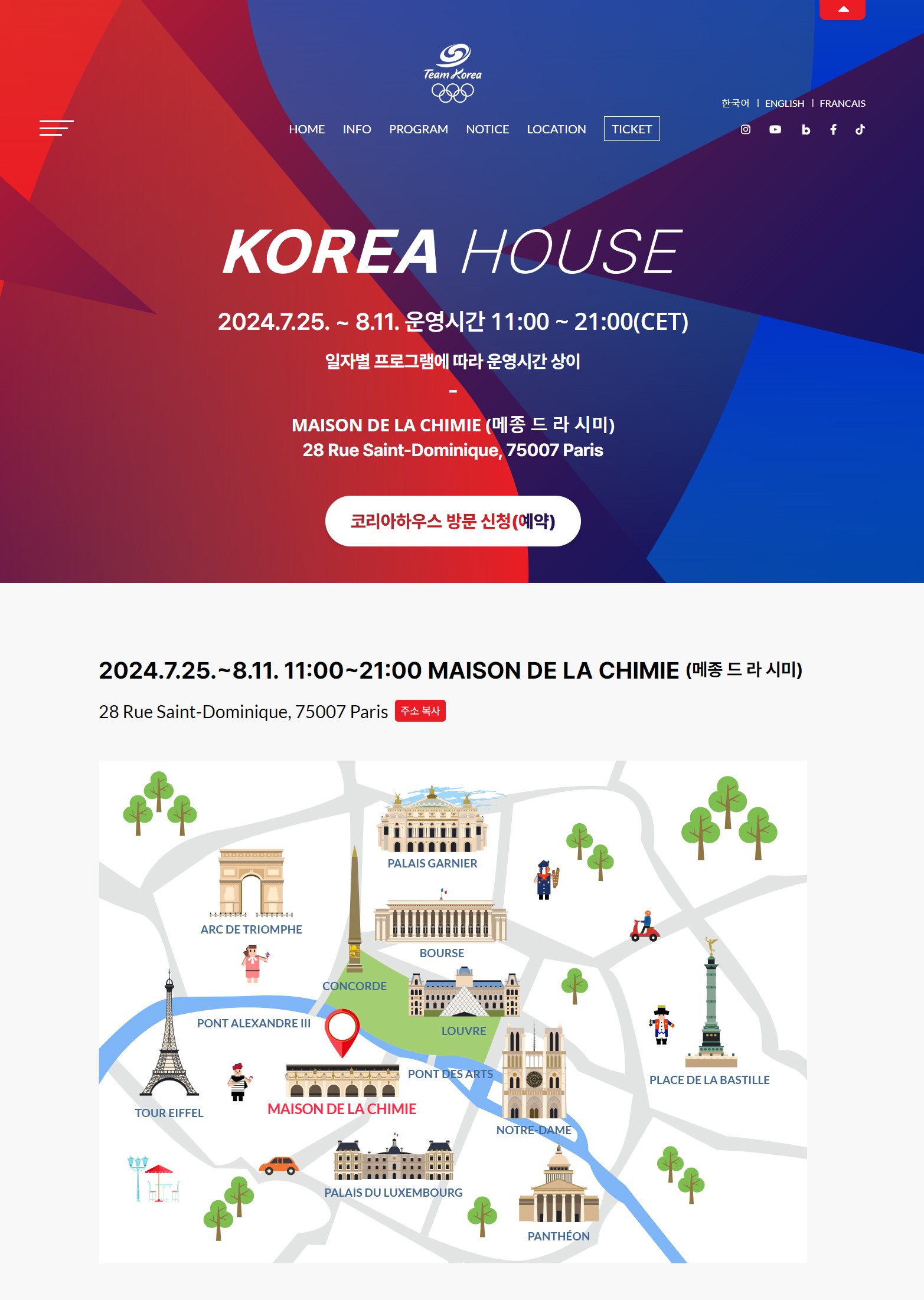 2024 파리하계올림픽 코리아하우스가 운영됩니다.