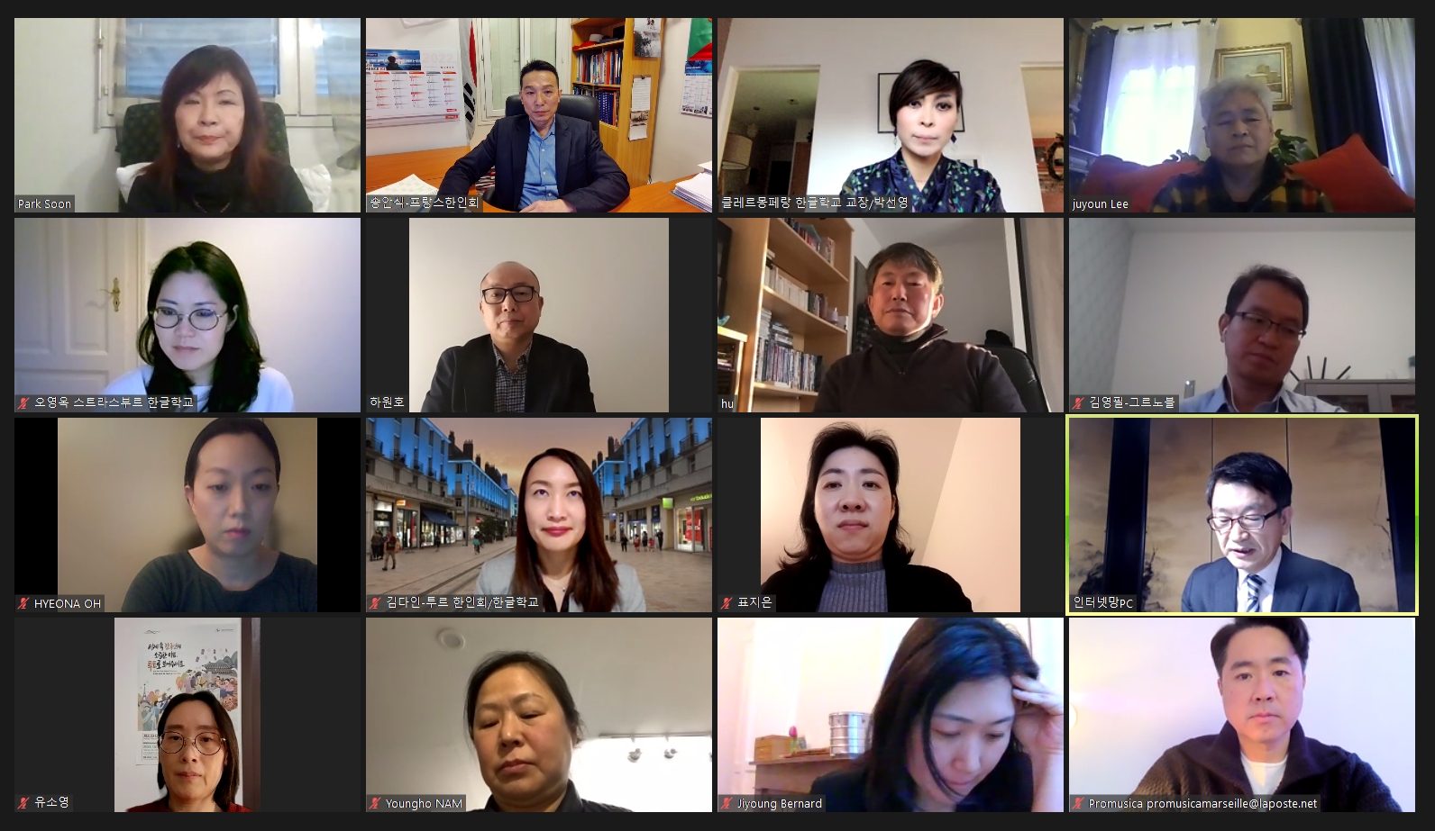 온라인으로 프랑스 각 한인회 회장님들과 한글학교 교장선생님이 모여 온라인 간담회를 진행 하였다.