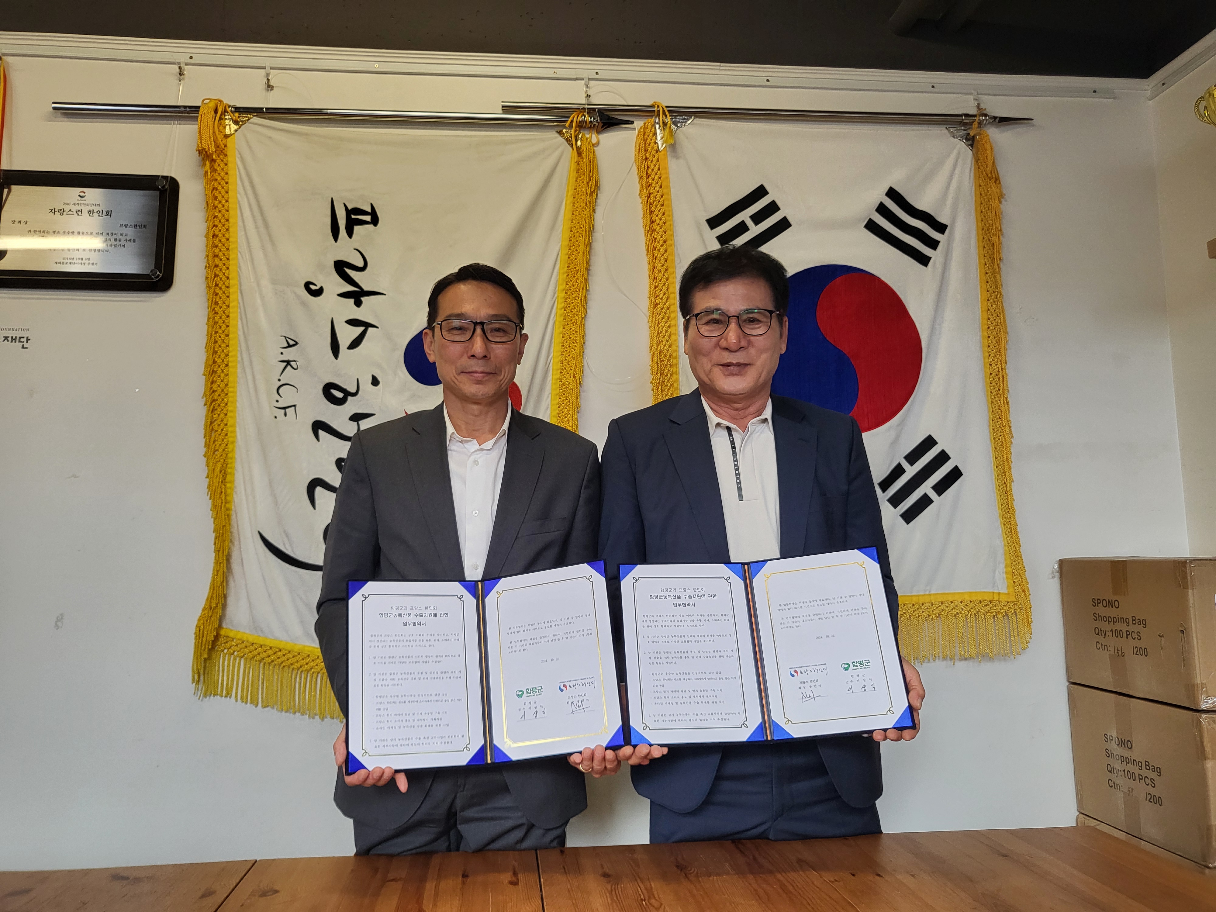 [2024-10-22] 함평군 MOU체결식 작성자한인회 댓글0 조회908 작성일24.10.24 13:49 본문 공유 이상익 함평군수님 외 함평군청 직원 6명이 한인회에 방문하여 함평군 농특산품 수출지원에 관한 업무 협약식을 가졌습니다. Comment 0 댓글목록 등록된 댓글이 없습니다.