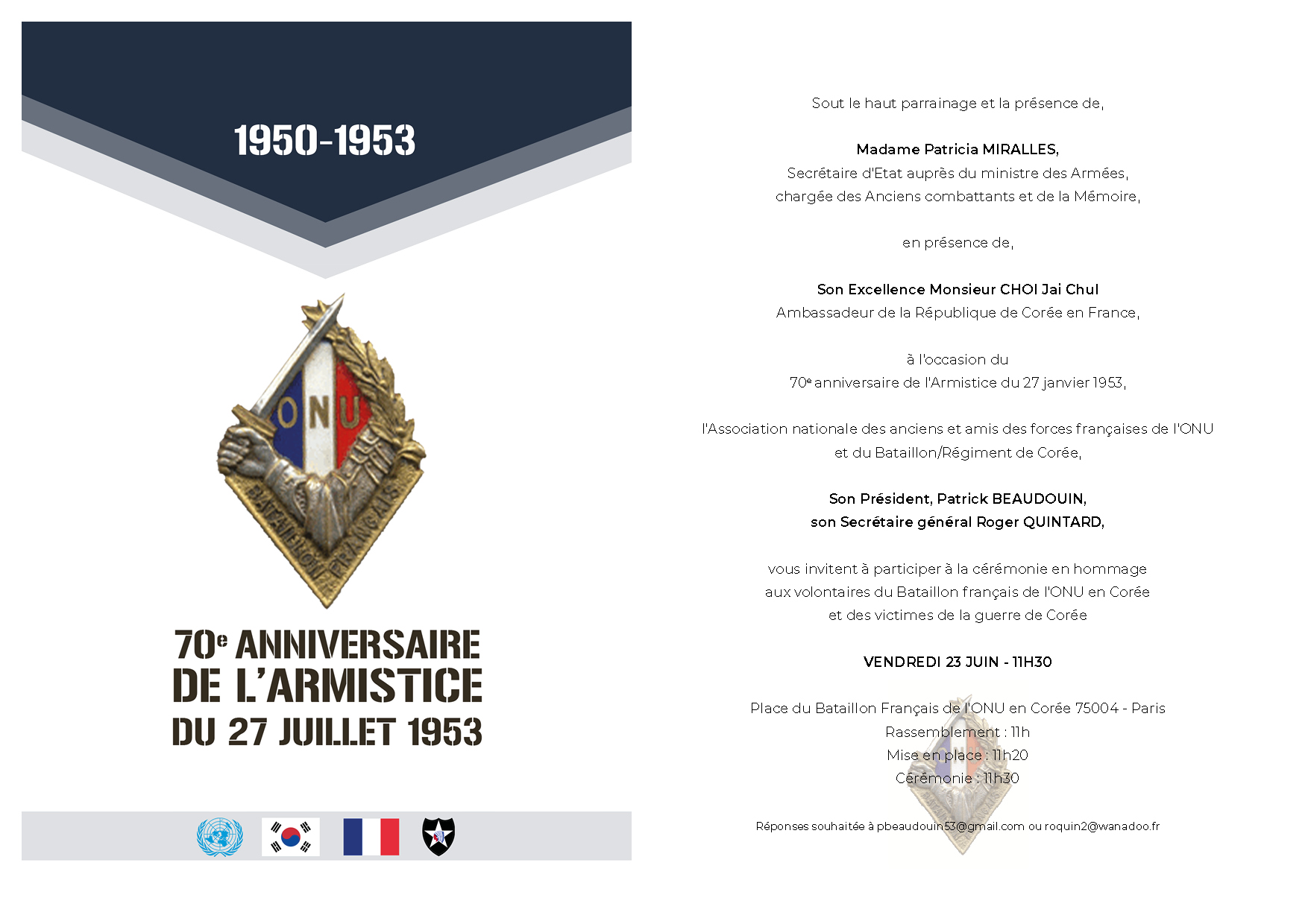 제목내용제목+내용글쓴이글쓴이(코) 번호 제목 글쓴이 조회 날짜 21 프랑스 한글학교 학생 모집 F 한인회 1646 08-28 20 [2024.09.13~15] 2024 한가위 축제 F 한인회 2236 08-16 19 프랑스 한글학교 F 한인회 1482 07-19 18 [2024년6월29일 마감] 생시르 프랑스 육군사관학교 대한민국 연수 후원 모금 F 한인회 1513 06-10 17 [2024년도] 한인회 강좌 사물놀이 F 한인회 1494 05-30 16 [2024-05-01] 2024 프랑스 한인회 체육대회 F 한인회 2311 04-03 15 [2024-03-01] 105주년 삼일절 기념식 F 한인회 1897 02-13 14 [2024년도] 프랑스 한인회 회원을 위한 강좌 (생활불어, 합창) F 한인회 2012 01-16 13 [2023-12-20] 프랑스 한인회 정기총회 & 송년회 F 한인회 2275 11-09 12 [2023-09-16,17] 2023 프랑스 한가위 축제 F 한인회 2734 09-01 11 [2023-08-15] 제78주년 광복절 기념식 F 한인회 3035 07-10 열람중 [2023-06-23] 정전 70주년 6.25 행사 F 한인회 3010 06-19 9 [2023-05-08] 한인 체육대회 F 한인회 3363 04-13 8 [상시모집] 생활불어 무료 아뜰리에 F 한인회 3046 03-28 7 [2023-03-01] 104주년 삼일절 기념식 F 한인회 2906 03-28 처음 1페이지 열린2페이지 3페이지 맨끝