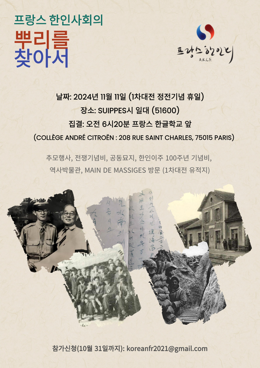 프랑스 한인회는 예년과 같이 11월 11일 월요일 1차대전 정전기념 휴일에 Suippes시 방문을 준비하고 있습니다.