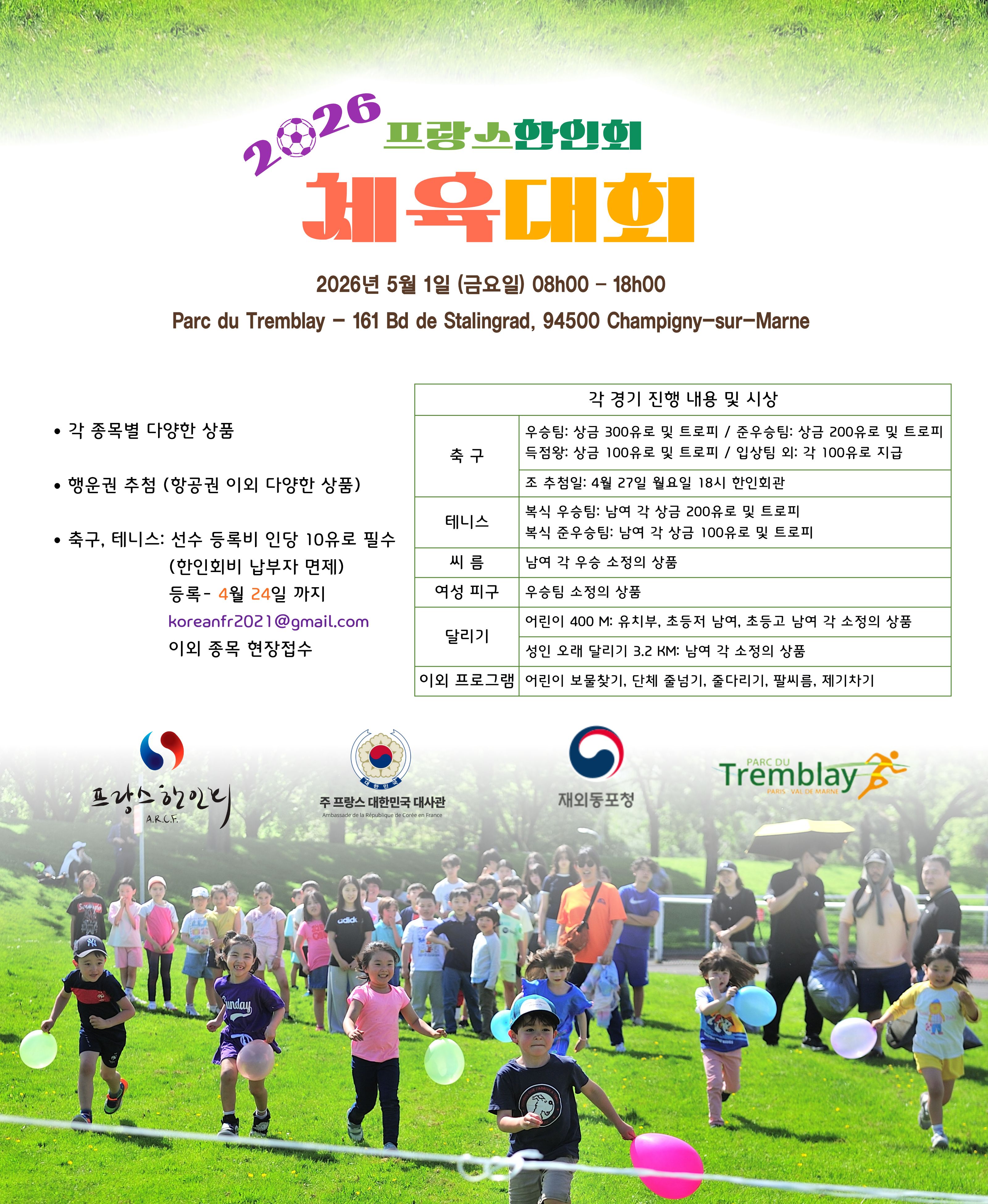 2026 프랑스 한인회 체육대회가 아래와 같이 열립니다.